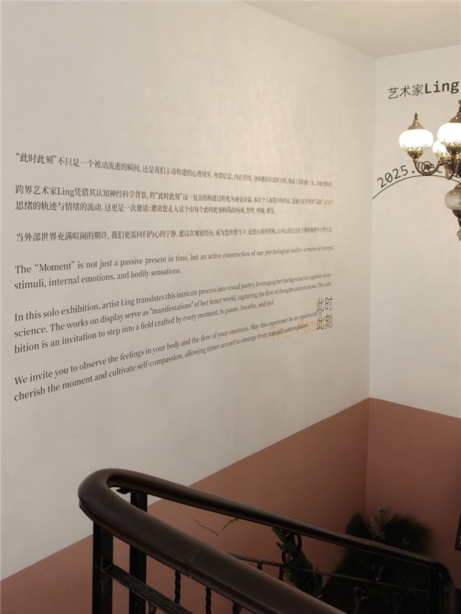 展览前言中写道:“此时此刻”并非只是一个被动流逝的瞬间,而是被我们主动构建的心理现实。外部信息、内在情绪、身体感知在此时交织,形成了我们独一无二的此刻体验。Ling凭借其认知神经科学背景,将这一复杂的构建过程化为视觉诗篇。