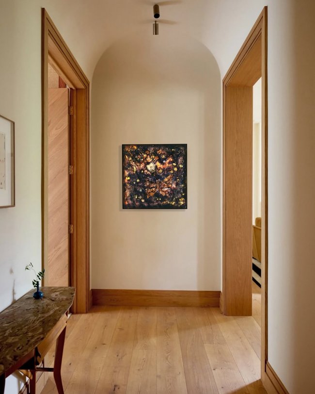 《碧渊》以翡翠绿奢石为基底,纹理深邃如渊,荧光点缀如星尘沉落;《金是坠落的星》以深蓝为底色,金色纹路如星云流转,将黄金源自宇宙星尘的地质概念融入视觉表达,以自然肌理承载东方哲思,在平面之上构建出富有时空感的艺术场域。